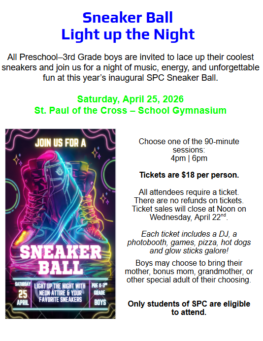 The SPC School Board will have two (2) open positions for the upcoming 2026-27 school year. We invite parents and parish members to consider taking a leadership role and participate on the school board. Please read the details and information here.