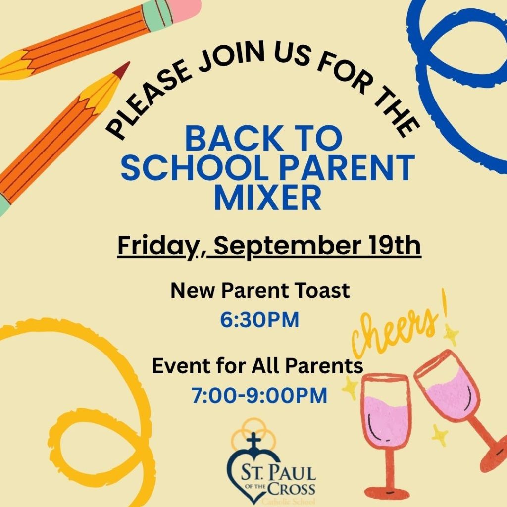 We are so excited for our annual parent mixer this Friday, September 19! This is always such a fantastic community event, and we love getting our parents together to celebrate the start of the year! We understand there is also a Friday Night Lights game, so to help accommodate the football families a little, we have pushed back the event by a half hour. We will have the new parent toast at 6:30 (mentors are welcome to attend at this time), and the event for all parents runs from 7:00 to 9:00 pm. Father James will open with a blessing, followed by a toast from Mr. White. The event will also feature a beer truck, wine bars, and a DJ! This is a casual parent night out to enjoy, mingle, and celebrate SPC. Please click below to RSVP. If you signed up to volunteer, we will email you with any changes to the times as needed.